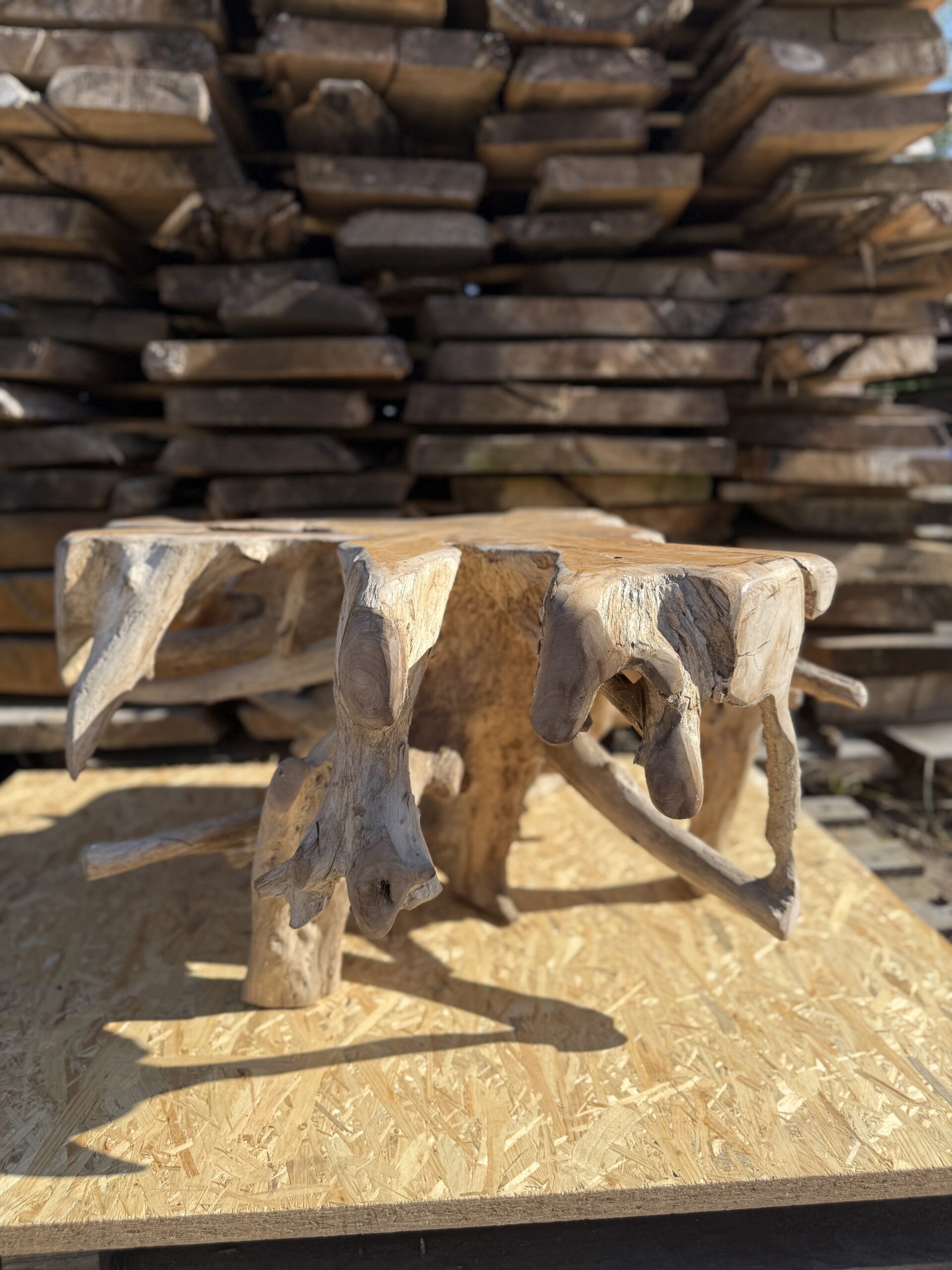 Korzeń teakowy – naturalny stolik lub baza pod blat (80 × 80 cm, wysokość 44 cm)